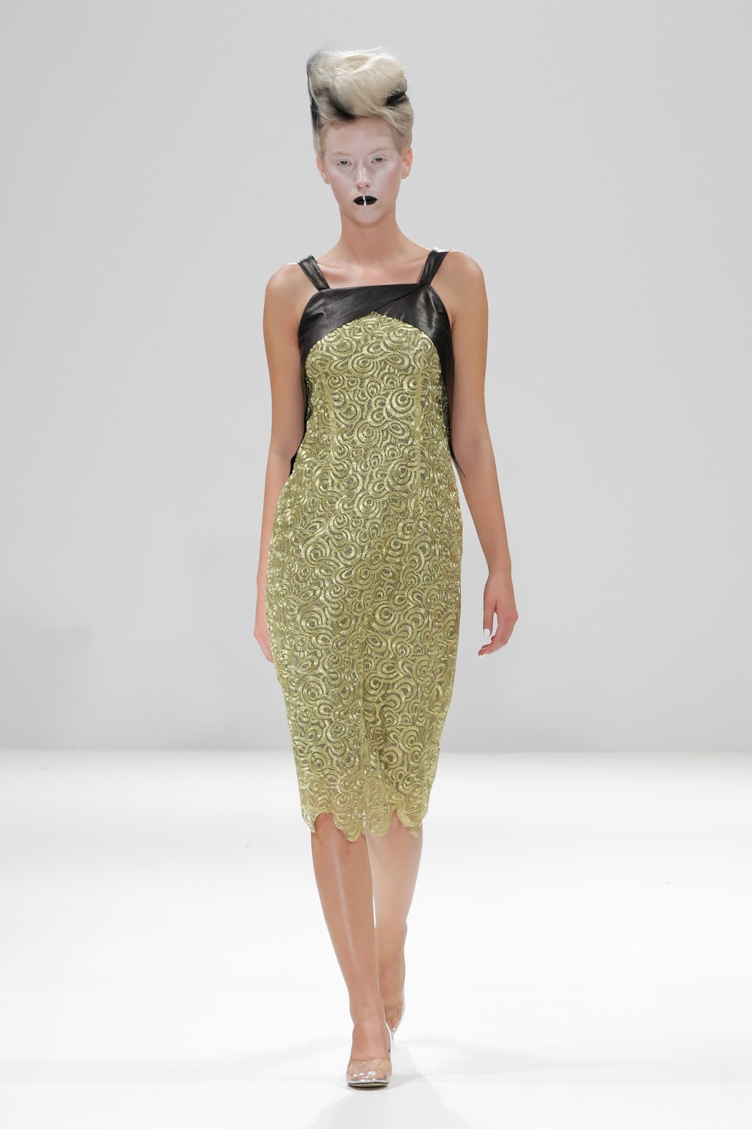 ...Complimenting the antique frames, the final garments altered the monochrome palette with a pop of metallic colour...